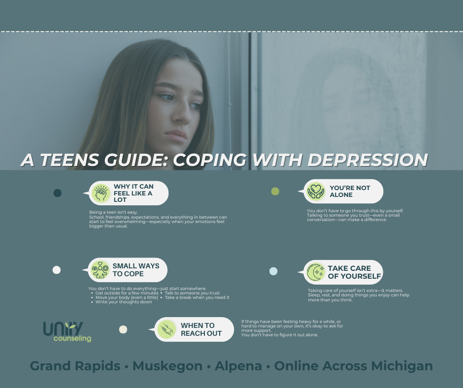 As a teen, learning how to cope with depression can be difficult. However, you don't have to learn how to do it alone. At Unity Counseling, our team of caring therapists would be happy to offer you support from our Michigan-based therapy practices in Grand Rapids, MI, and Alpena, MI You can start your therapy journey by following these simple steps: You deserve to feel heard and understood, and we would be honored to help you on your journey. To start teenage counseling, please follow these simple steps: