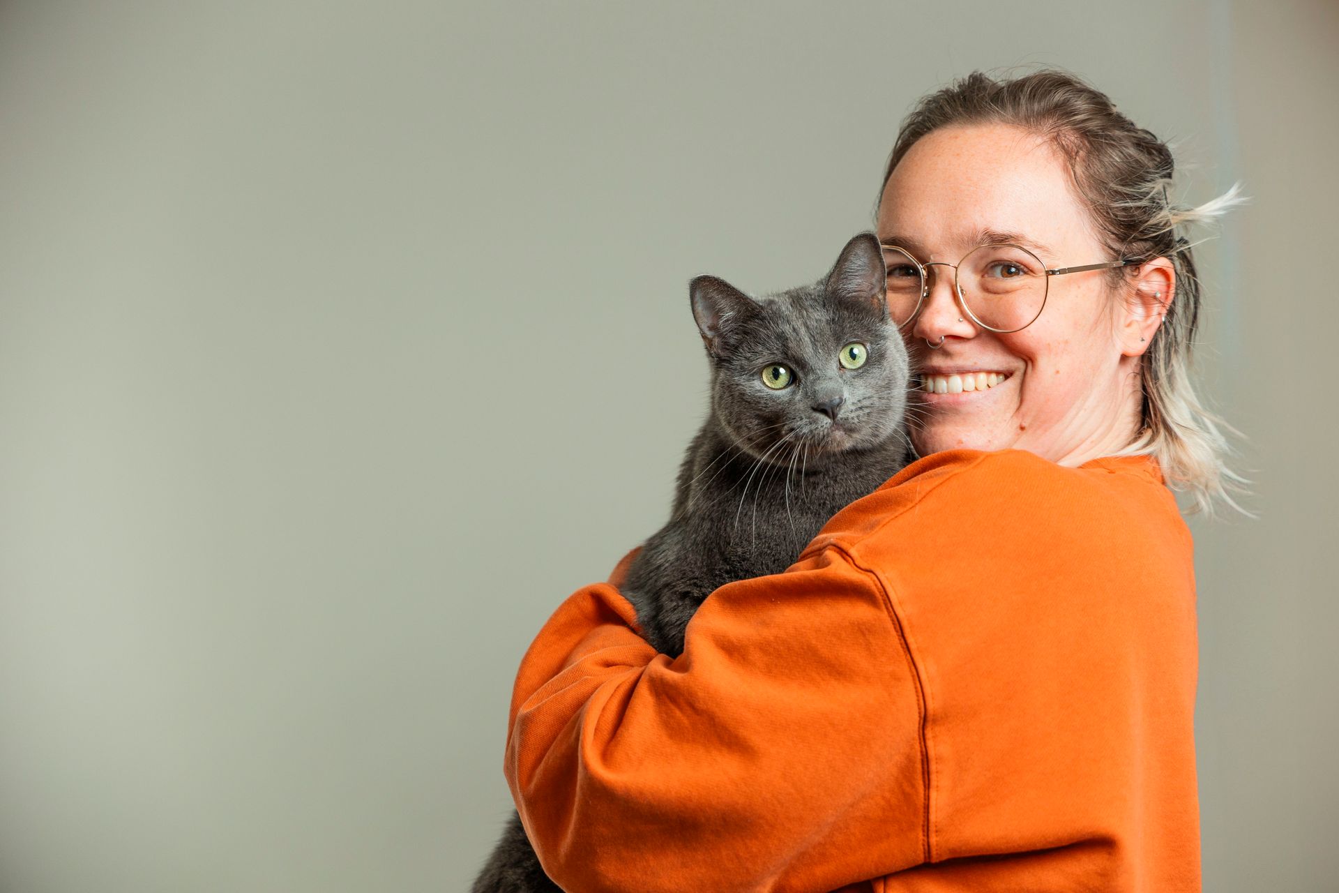 Pictured with me is my cat, MaxiePad! Her favorite thing to do is play fetch at all times of the day, although 2am to 4am is her prime time. When she’s not playing fetch, she’s either telling me her life’s story or trying to dig into my couch cushions (she may be part dog).