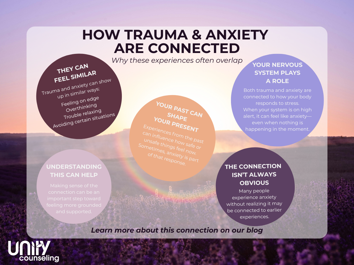 The relationship between trauma and anxiety is complex, and it can be challenging to deal with. Having support and understanding how your body and mind react to trauma can be a helpful first step. If you feel overwhelmed or need more help, don't hesitate to contact a mental health professional. There is no shame in seeking help and taking steps toward healing.